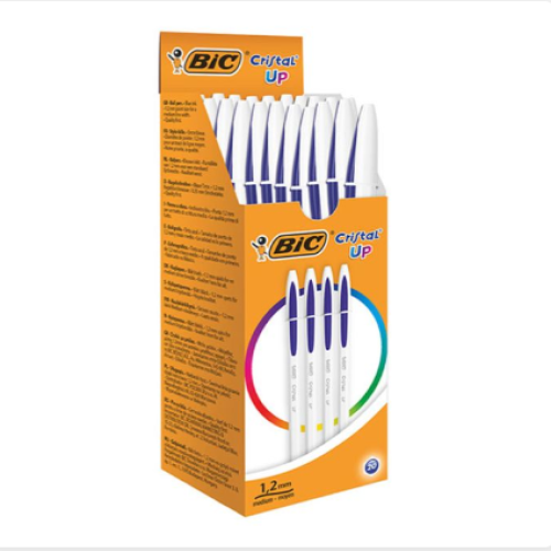 Stylo à Bille BIC Cristal Up - Boite de 20 Stylos - Pointe large de 1,2 mm - Sensation de douceur intense - Bille ultra-résistante indéformable et inusable - Couleur: Bleu.