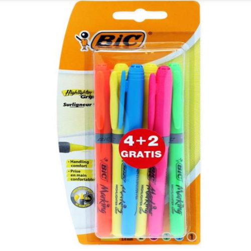 Lot de 6 surligneurs - Couleur encre : Assortis - Matières : Corps plastique