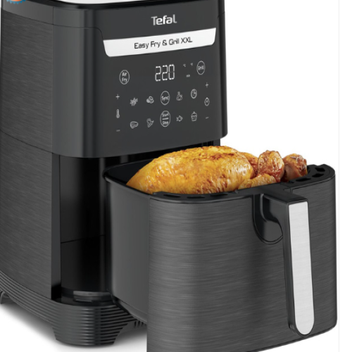 Friteuse Sans Huile Tefal Easy Fry EY801815 - Puissance: 1650 Watts - Capacité : 6.5 Litres (Idéale de 4 jusqu'à 8 personnes) - Matériel : Aluminium - Température réglable jusqu'à 200 °C - 8 programmes automatiques - Écran intégré LCD - Double paniers à frites - Fonction de protection contre la chaleur - Minuterie d'arrêt automatique - Revêtement anti-adhésif - Nettoyage facile - Poignée froids au toucher - Dimensions : 43,2 x 30,3 x 36,2 cm - Couleur : Noir - Garantie : 1 an