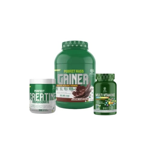 Développez votre masse musculaire et boostez votre énergie quotidienne avec le Pack Prise de Masse Perfect Nutrition combinant Gainer 3kg, Creatine 200g et Multivitamine 120 capsules. Une formule ultra-complète conçue pour les sportifs qui veulent progresser rapidement et efficacement. Gainer 3kg Perfect Nutrition Un mélange riche en glucides complexes et protéines de haute qualité pour favoriser la prise de masse, augmenter l’apport calorique et soutenir la récupération musculaire. Idéal pour les métabolismes rapides et les programmes intensifs. Creatine 200g Perfect Nutrition Créatine monohydrate micronisée pour augmenter la force, améliorer la puissance, booster les performances et favoriser la croissance musculaire. Excellente solubilité et assimilation rapide. Multivitamine 120 cps Perfect Nutrition Formule complète de vitamines et minéraux pour renforcer l’immunité, réduire la fatigue, soutenir le métabolisme énergétique et optimiser la récupération. Les avantages du pack Favorise la prise de masse musculaire rapide Donne plus de force, d’endurance et d’énergie Améliore la récupération après l’entraînement Réduit la fatigue et soutient le système immunitaire Pack économique et complet pour un programme de prise de masse efficace Ce pack est idéal pour les sportifs, beginners ou confirmés, qui souhaitent augmenter leur masse musculaire et optimiser leurs performances globales.