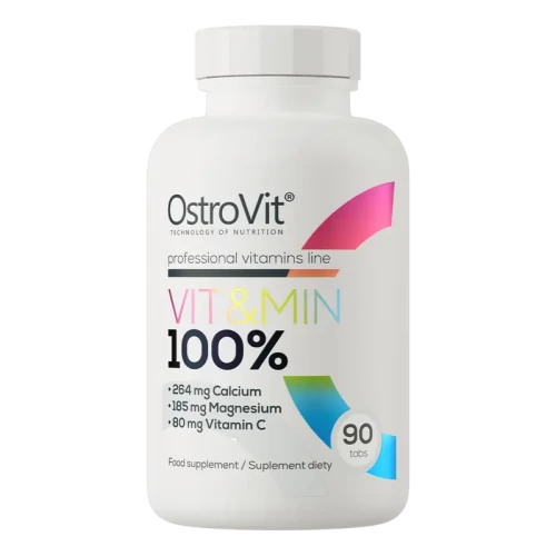 OstroVit 100% Vit&Min (90 comprimés) est un complément alimentaire complet riche en vitamines (A, B, C, D, E) et minéraux essentiels tels que magnésium, calcium, zinc, fer, cuivre, sélénium et iode. Formulé pour soutenir la vitalité et l’équilibre nutritionnel au quotidien, il offre une haute biodisponibilité et une forme pratique à avaler. Chaque dose de 2 comprimés couvre les besoins essentiels en micronutriments — 45 portions par boîte.