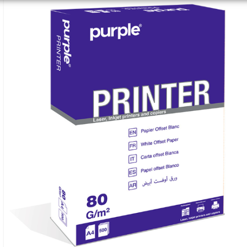 Rame Papier Purple - Type de papier : Papier Blanc - Format : A4 - Grammage : 80 g/m² - Nombre de papiers : 500 Feuilles - développé pour les copieurs et imprimantes à grandes vitesses - Offre une qualité supérieure et une performance constant - Couleur : Blanc