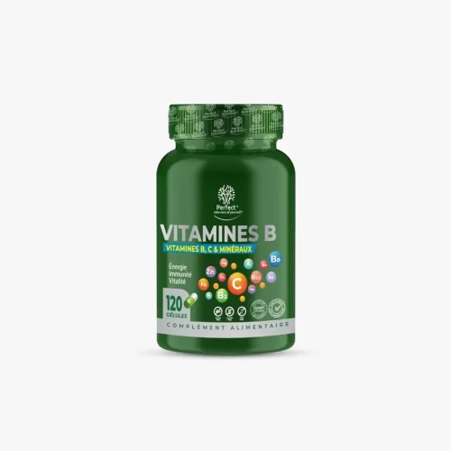 Vitamine B Complex 120 Capsules – Perfect Nutrition est un complément alimentaire essentiel pour soutenir le métabolisme énergétique, le système nerveux et réduire la fatigue physique et mentale. Sa formule complète regroupe les principales vitamines du groupe B, indispensables à la production d’énergie, au bon fonctionnement du cerveau et au maintien d’un système nerveux sain. Elle contribue également à améliorer la concentration, la vitalité quotidienne et les performances, notamment chez les sportifs et les personnes actives.